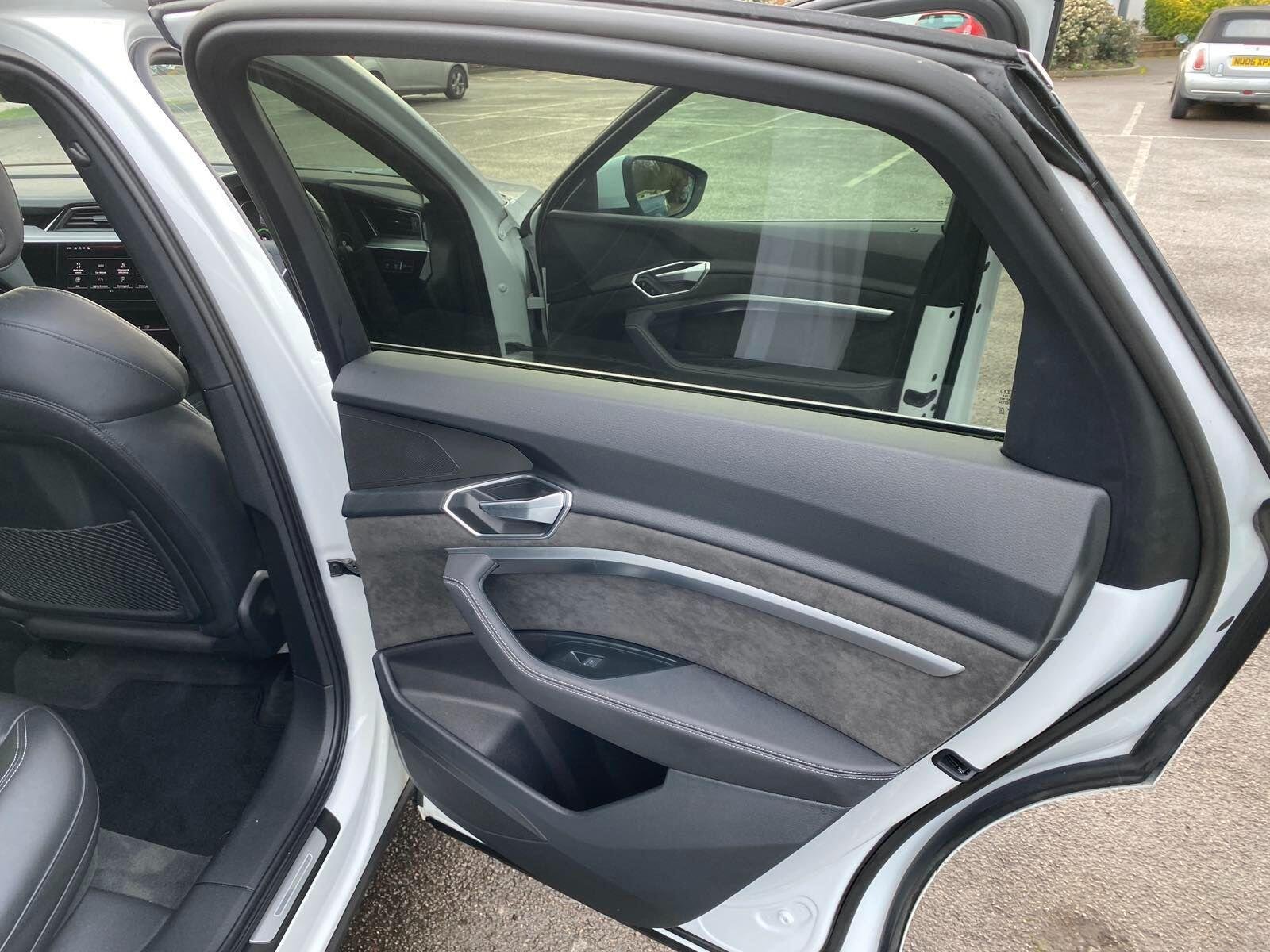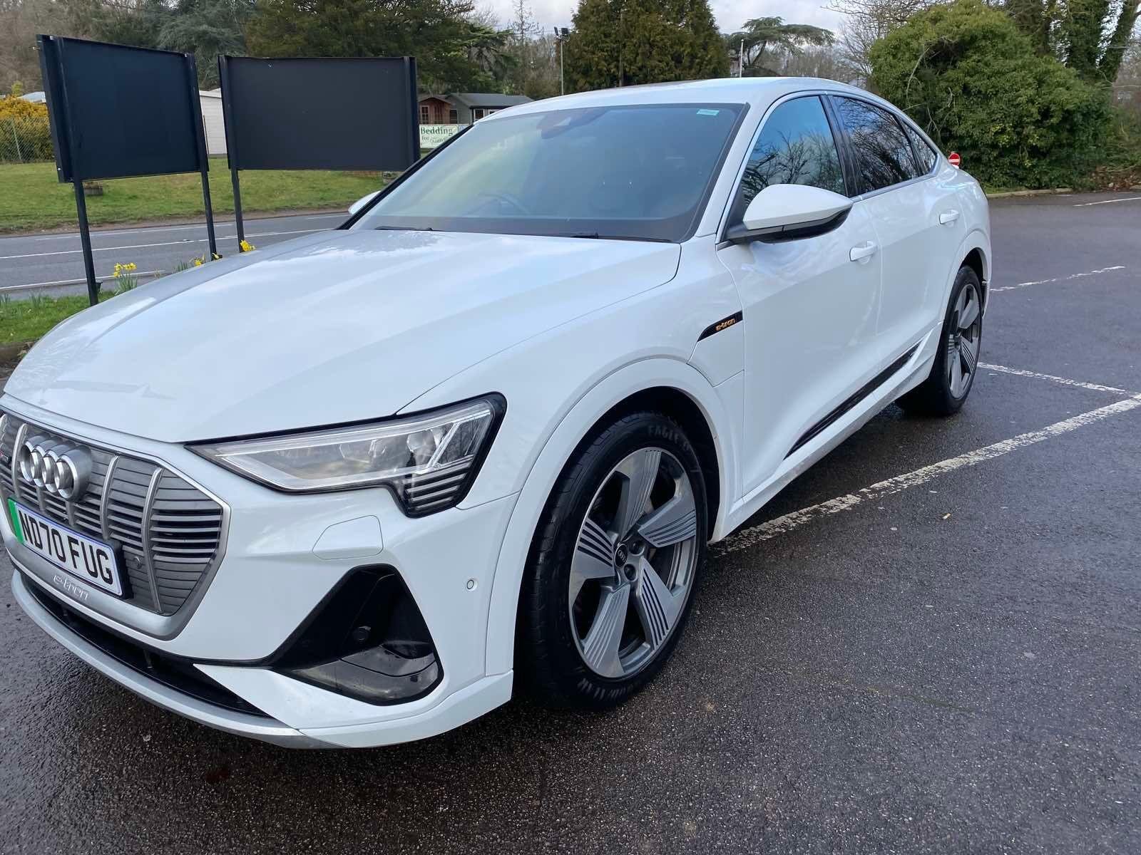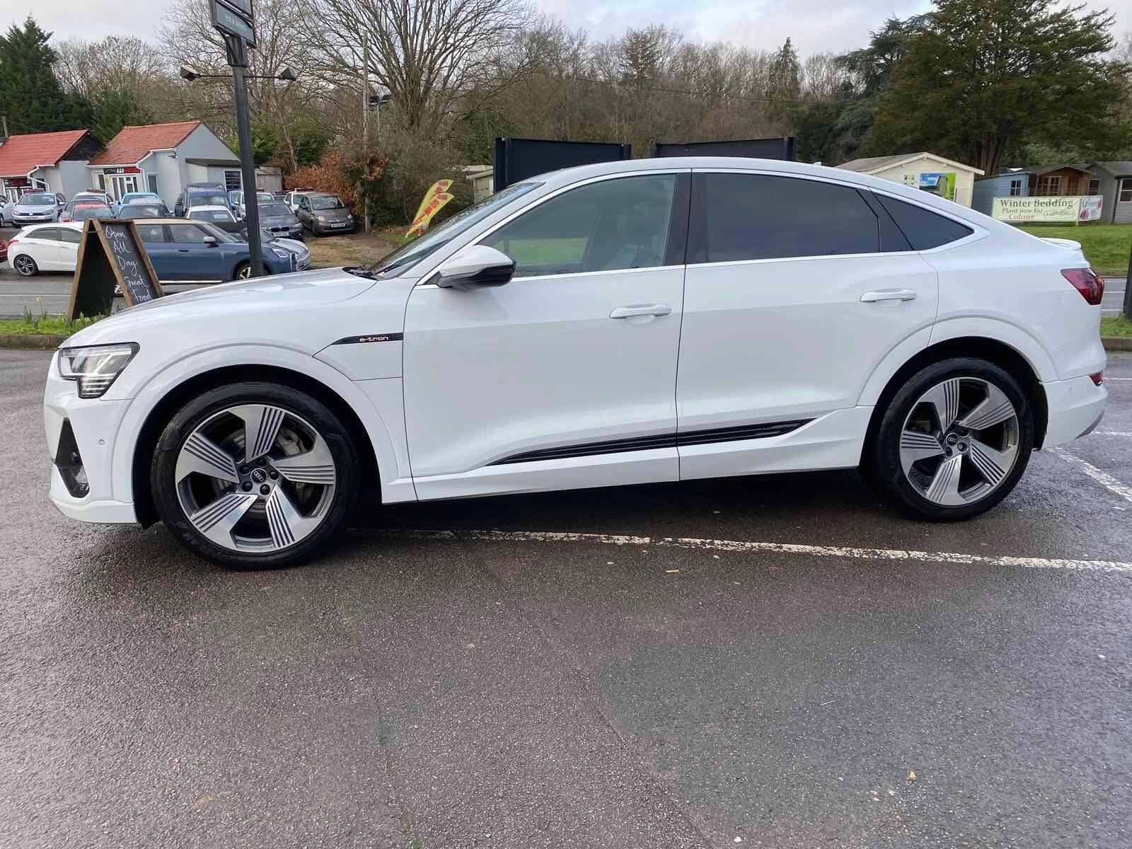 The car has got: AIR CON, AUO CLIMATE CONTROL,AUTOMATIC LIGHTS, AUTOMATIC WIPERS, BLUETOOTH,CRUISE CONTROL, DAB,DUAL ZONE CLIMATE,FULL LEATHER TRIM, HEATED SEATS,WIRELESS CHARGING!This 2020 Audi e-tron S line boasts a full service history and a clear vehicle history check, offering peace of mind for its next owner. As an electric vehicle with four wheel drive, it combines advanced technology with impressive performance. The S line trim enhances its already sophisticated appeal, and with a substantial 95 kWh battery, it offers a maximum range of 257 miles when new. Charging is convenient, taking approximately 14 hours at home using a 7kW charger, or a rapid 40 minutes to reach 80% charge at a public charging station.