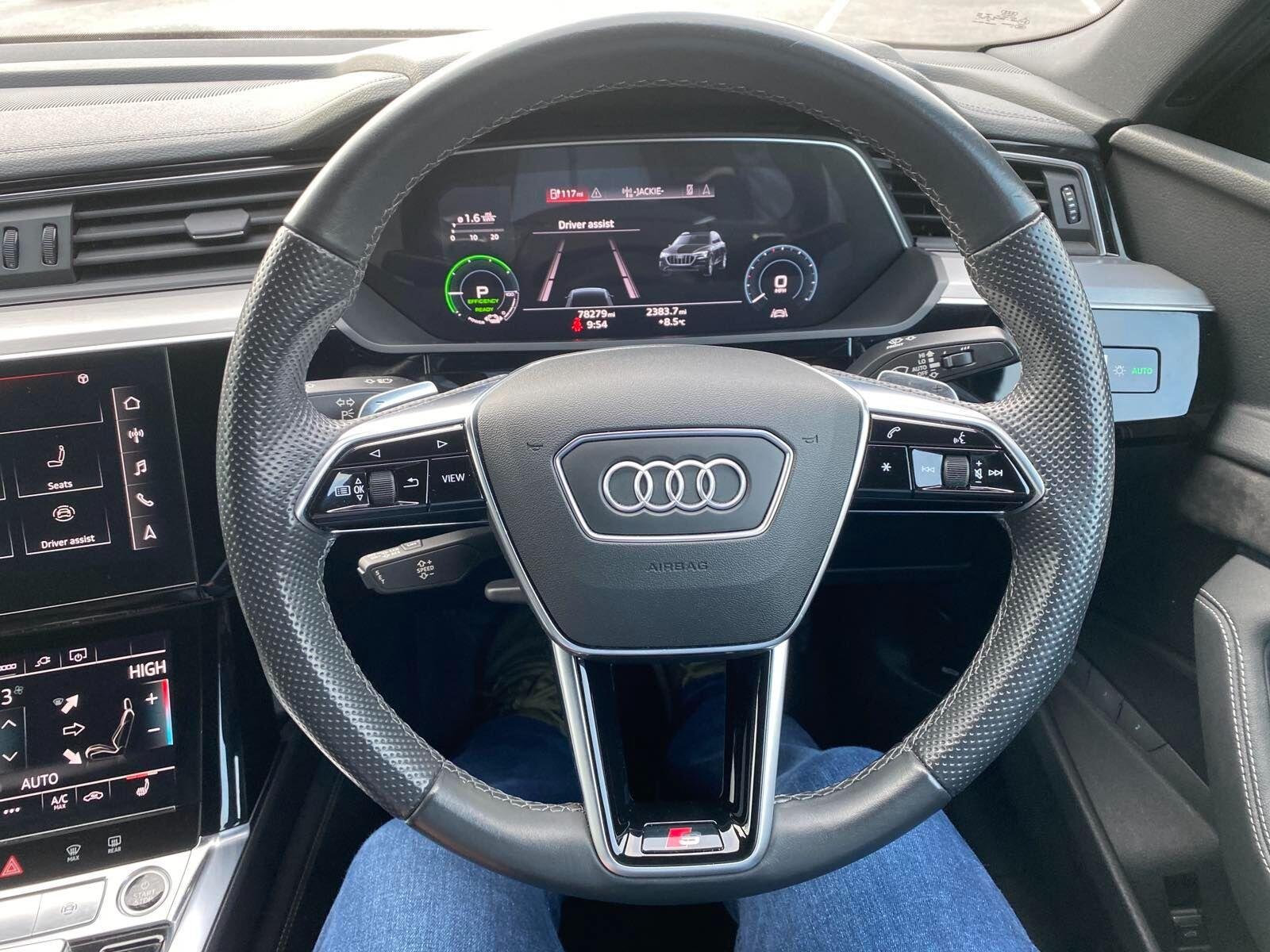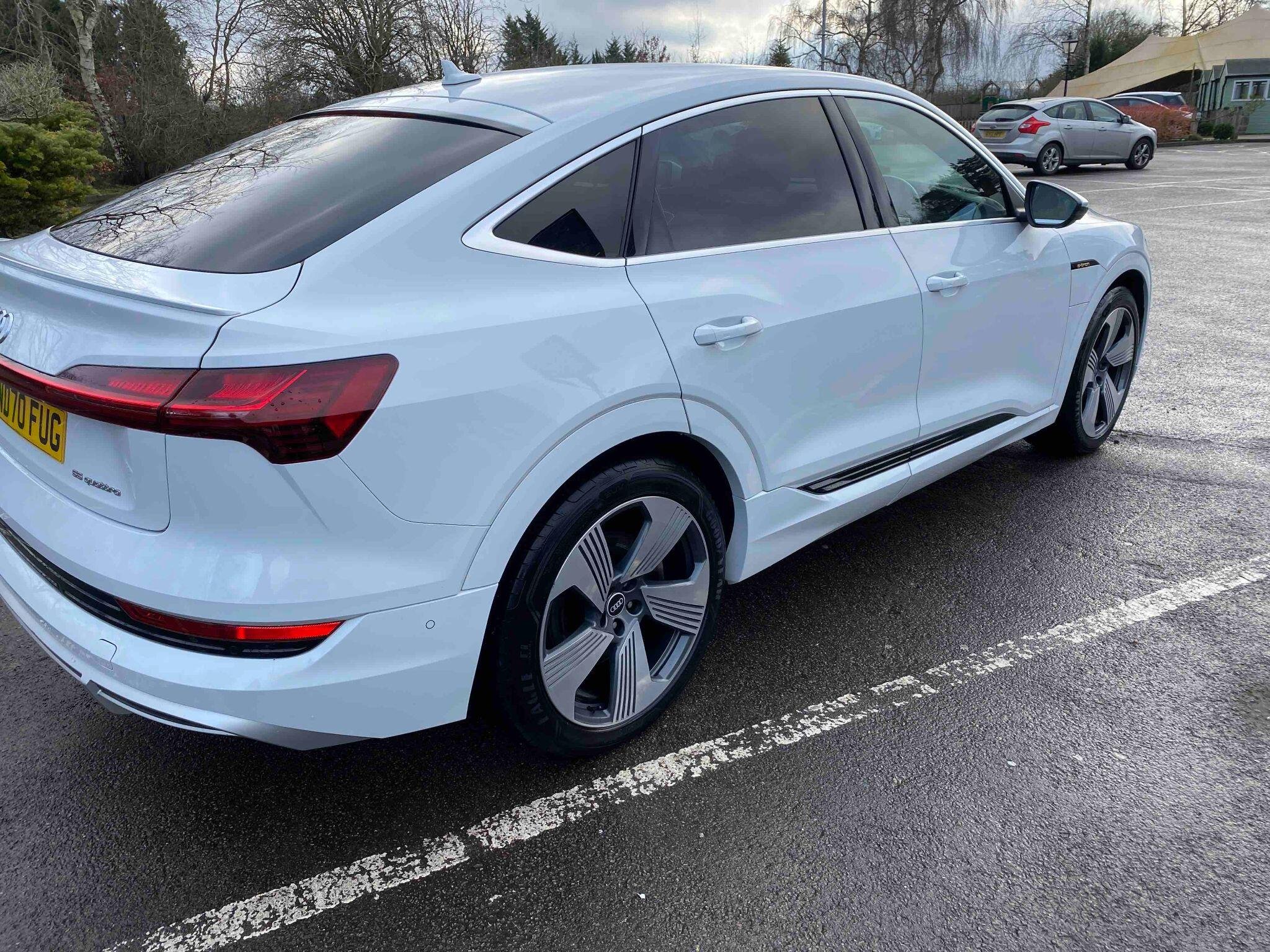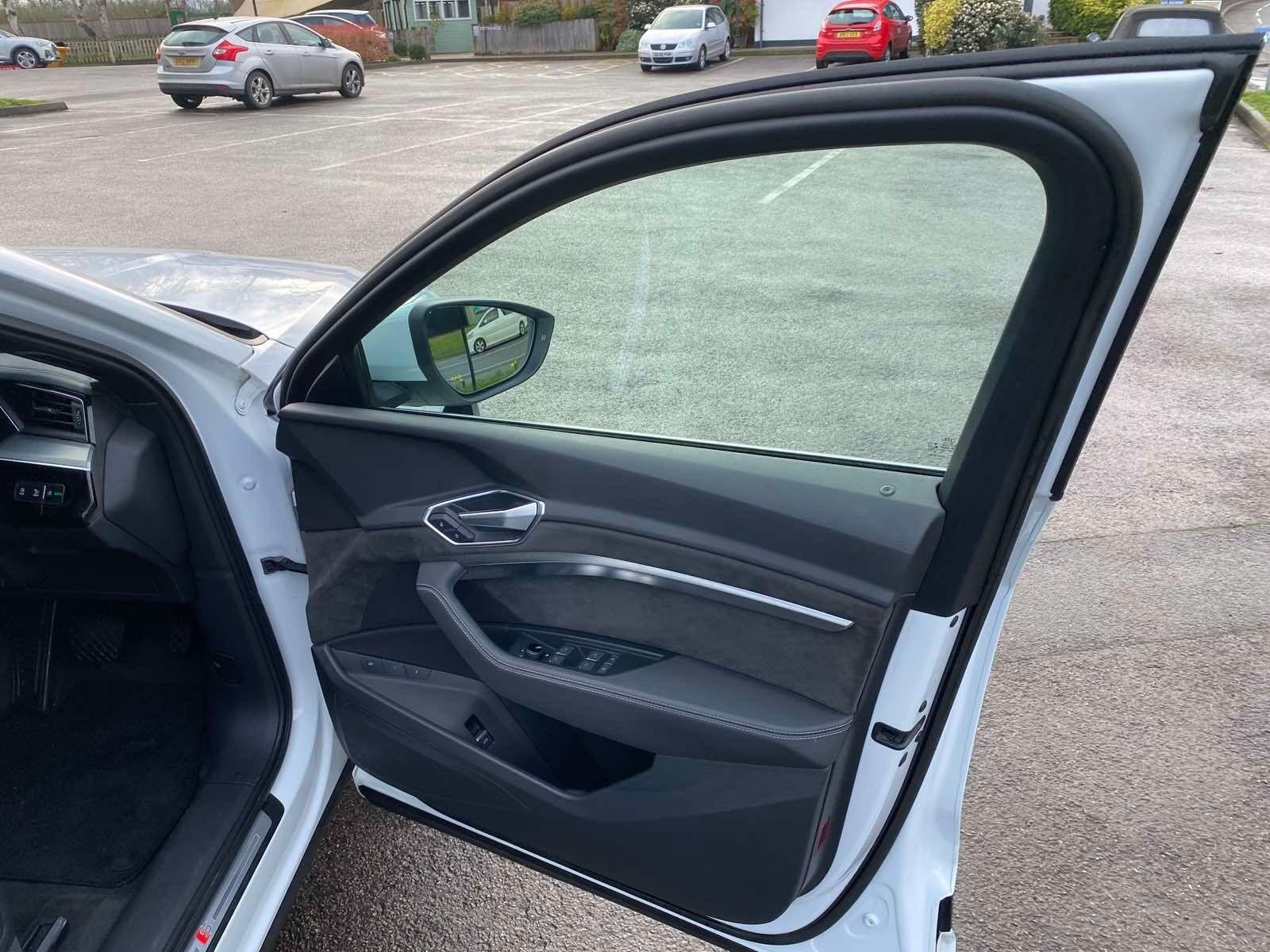 The car has got: AIR CON, AUO CLIMATE CONTROL,AUTOMATIC LIGHTS, AUTOMATIC WIPERS, BLUETOOTH,CRUISE CONTROL, DAB,DUAL ZONE CLIMATE,FULL LEATHER TRIM, HEATED SEATS,WIRELESS CHARGING!This 2020 Audi e-tron S line boasts a full service history and a clear vehicle history check, offering peace of mind for its next owner. As an electric vehicle with four wheel drive, it combines advanced technology with impressive performance. The S line trim enhances its already sophisticated appeal, and with a substantial 95 kWh battery, it offers a maximum range of 257 miles when new. Charging is convenient, taking approximately 14 hours at home using a 7kW charger, or a rapid 40 minutes to reach 80% charge at a public charging station.