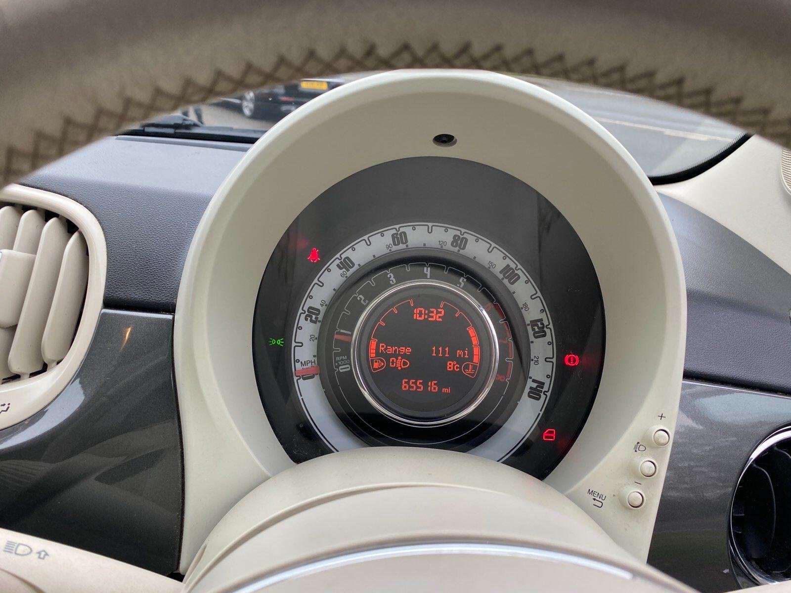 CAMBELT DONE :07.02.2025 ON 59560 MILES!THE CAR HAS GOT:AIR CON,BLUETOOTH,MEDIA CONNECTIVITY,PANNORAMIC ROOF,This 2016 Fiat 500 Lounge boasts a full service history and has had only one owner, with its MOT valid until March 2027. This Euro 6 compliant 1.2L petrol model has a clear vehicle history check and its last service was completed on 7th February 2025 at 59,560 miles. Inside, you'll find comfortable front seats with memory function, air conditioning for those warmer days, and a fixed glass roof with a sunblind for an open feel. For convenience, it includes rear parking sensors and a 5 inch touchscreen radio with AUX, USB, DAB, and Bluetooth connectivity.